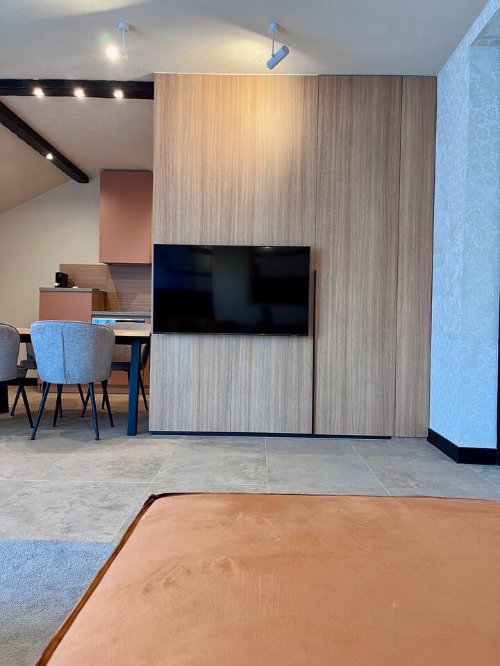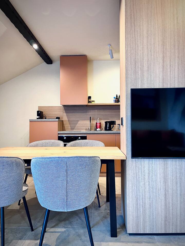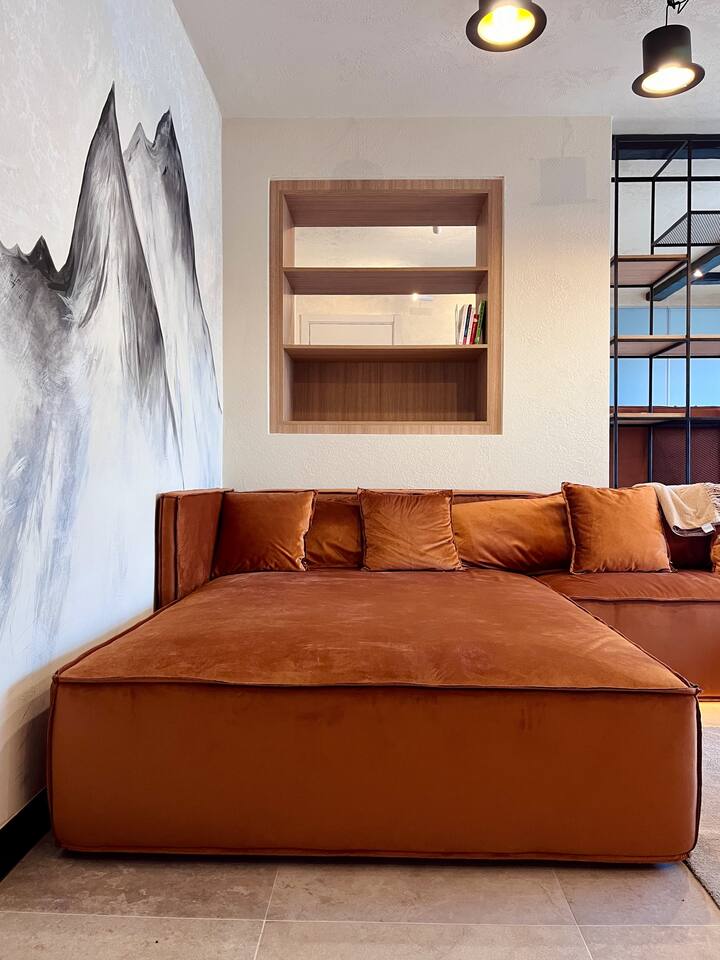 Discover a bright, open-concept 84 sq.m Loft on a quiet street next to Bansko Gondola Ski Lift and Glazne River. It features a King Size bed, a signature sofa, wood finishes, colourful touches, a rotating Samsung Android TV with NETFLIX, and a terrace. You are within walking distance of most points of interest! There is an elevator in the building and free on street parking. A loft in a modern building that makes you smile when coming home to it.