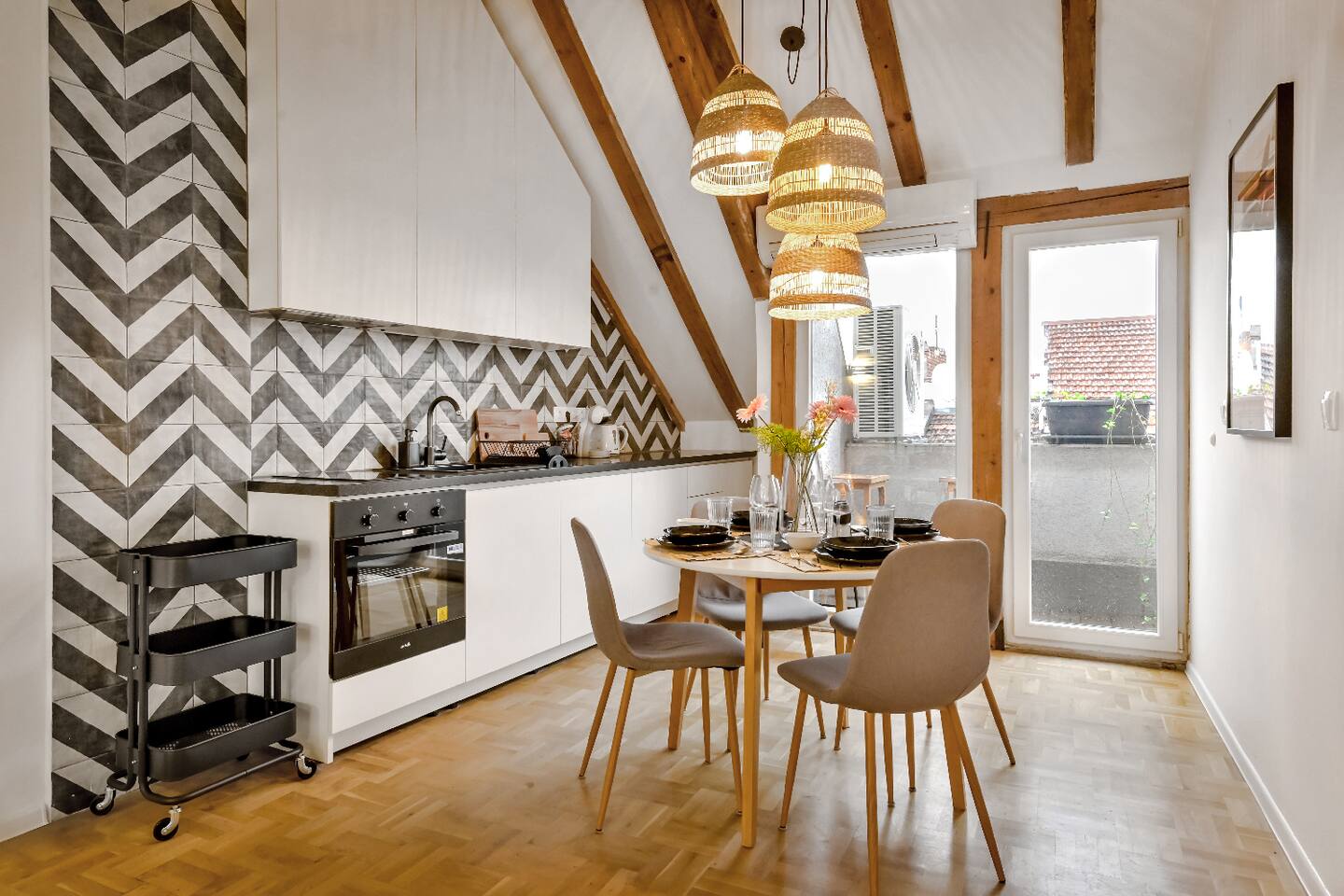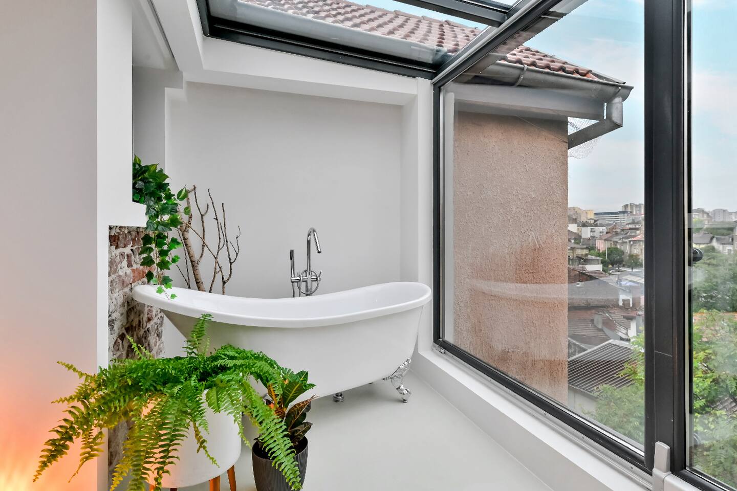 Our newly renovated sunny loft offers you a unique experience in the heart of Sofia. The cozy lounge area invites you in with a dreamy bathtub surrounded by greenery and a French window with a sunset view. The space also includes a relaxing bedroom with a working space, balcony, spacious living room with a sofa bed, full kitchen and a bathroom. The working space is equipped with an iMac (21 inches), as well as fast and reliable Wi-Fi access (50 Mbit) from everywhere in the apartment. For your perfect stay, there is also a 4K TV with Netflix, spacious play area, a lot of greenery, books, original NASA posters adorning the walls and a touch of boho details.