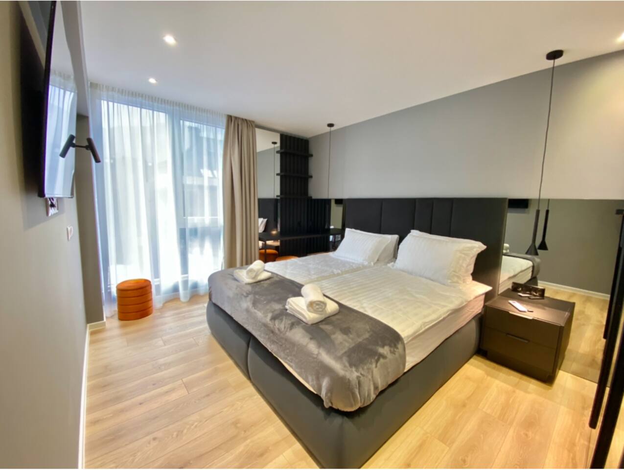 Stay in style in this modern apartment in a prestigious Sofia neighborhood with breathtaking views of Vitosha Mountain. The bright and spacious living room features a comfy extendable sofa, dining area, flat-screen TV, and fully equipped kitchen, opening to a balcony with stunning views. Relax in the elegant bedroom with a large bed and plenty of storage, and enjoy the sleek bathroom with a rain shower. FREE parking included for your convenience.