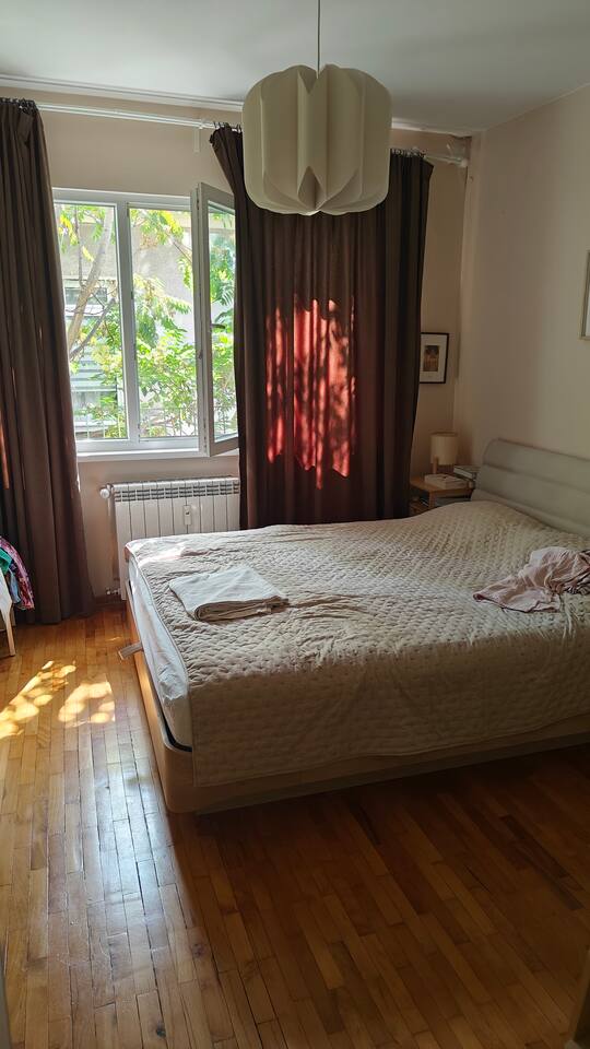 My home is a 2BD apartment on a quiet street in the center of Sofia.