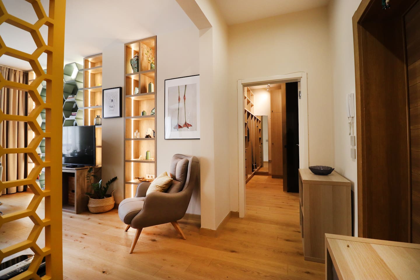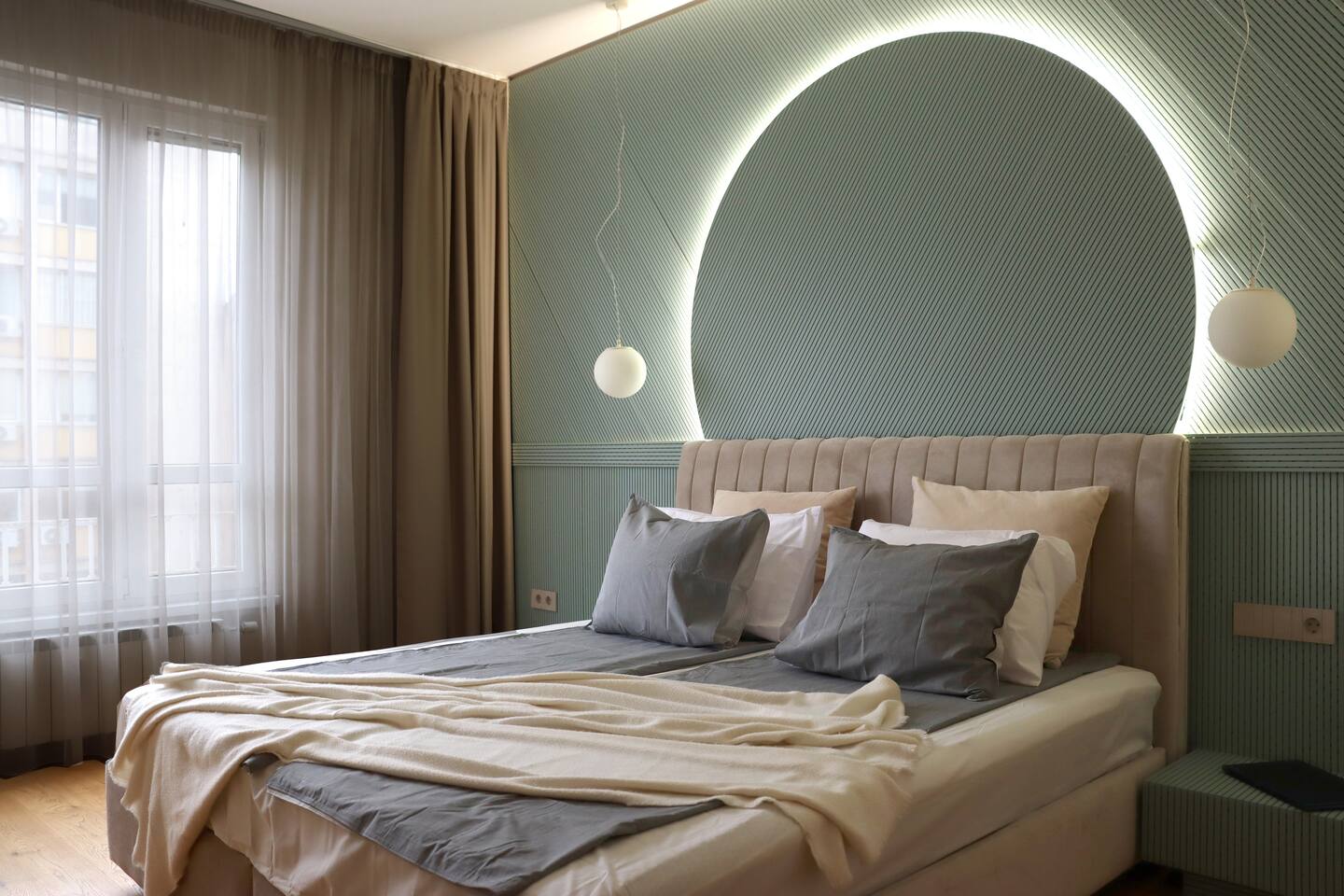 Experience urban elegance in this NEW Glamorous Central Suite, located on one of the most famous Sofia streets. This modern retreat offers sleek design, premium amenities, and the convenience of central Sofia at your doorstep. Enjoy the comfort of air conditioning, a dedicated workspace, and a fully equipped kitchen. Whether you're here for business or leisure, you'll appreciate the easy access to cultural hotspots, shopping, and dining options.