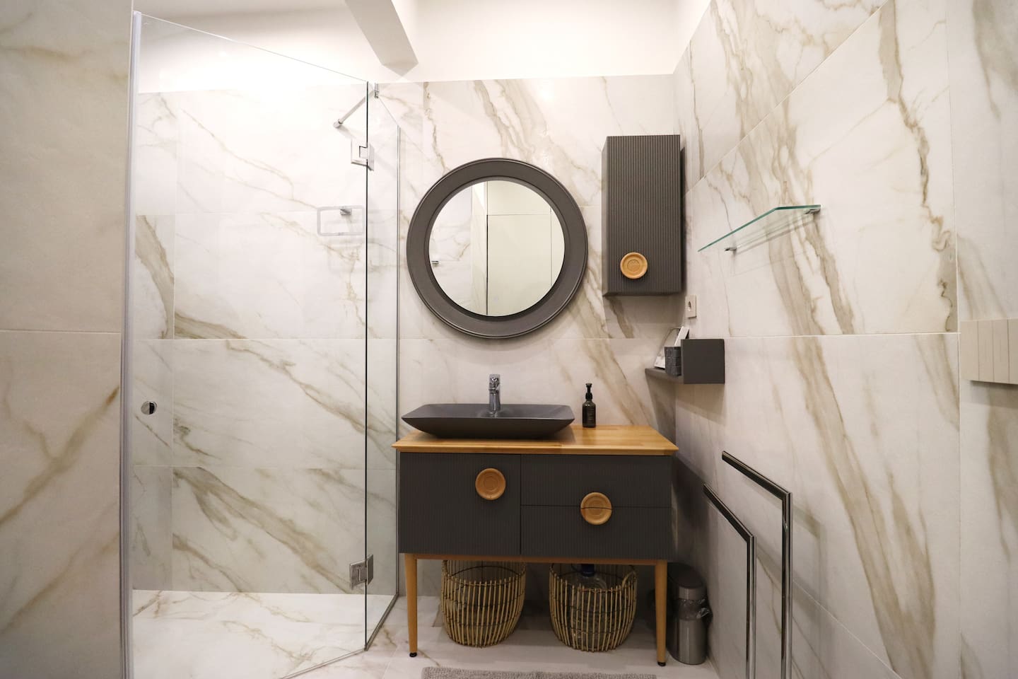 Guests have full access to the entire suite, including: - A modern kitchen with all cooking essentials - Spacious dining area - Comfortable living and sleeping areas - In-unit laundry facilities - Elevator access All amenities listed are exclusively for guest use.