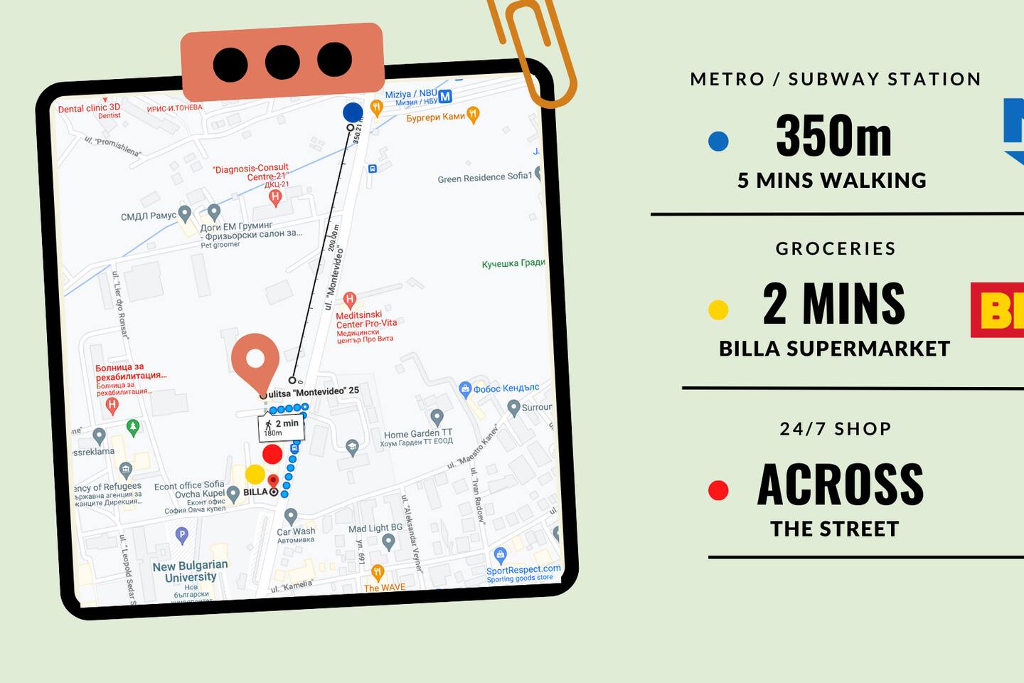 Located in a new residential building, the apartment is within a quiet, convenient area close to supermarkets and public transport. Guests enjoy the easy access to Sofia's city center via the metro, just minutes away. Ideal for short or long stays. ★ CLEANING & SANITIZATION ★ Health, safety, and well-being of our guests are of utmost importance. For this reason, we use a thorough cleaning process after each check-out. ★ PRIVATE TRANSFER SERVICE ★ Enjoy a seamless journey to our apartment with our transfer service, in partnership with local drivers. Benefit from quick booking, meet-and-greet service, and real-time updates. Relax with our friendly, English-speaking drivers at competitive rates. Feel free to contact us with any additional questions you might have.