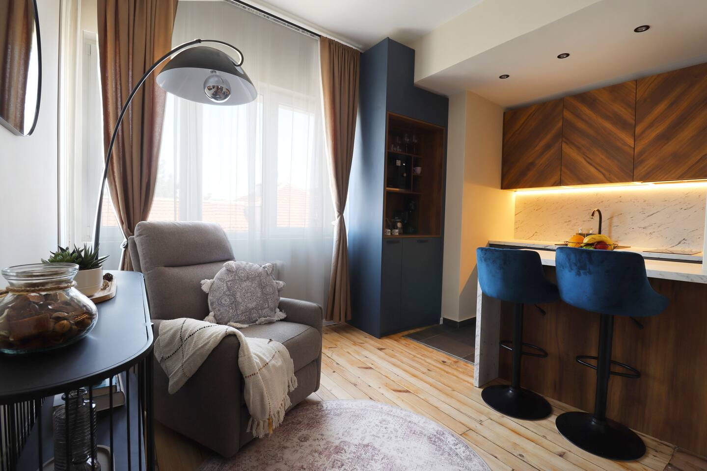 Experience Sofia’s charm in this new, beautifully renovated, cosy apartment in the city centre! Perfect for short and mid-term stays, this 5th-floor retreat offers comfort, great views, and modern amenities. Just a 5-minute walk to the National Palace of Culture metro and steps from Vitosha Boulevard's shops and restaurants. Great Wi-Fi. The building has no elevator, the shower area is compact, and the curtains allow some light. Enjoy a serene, convenient stay with a responsive host.