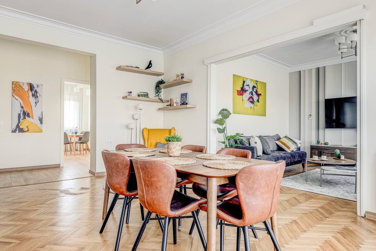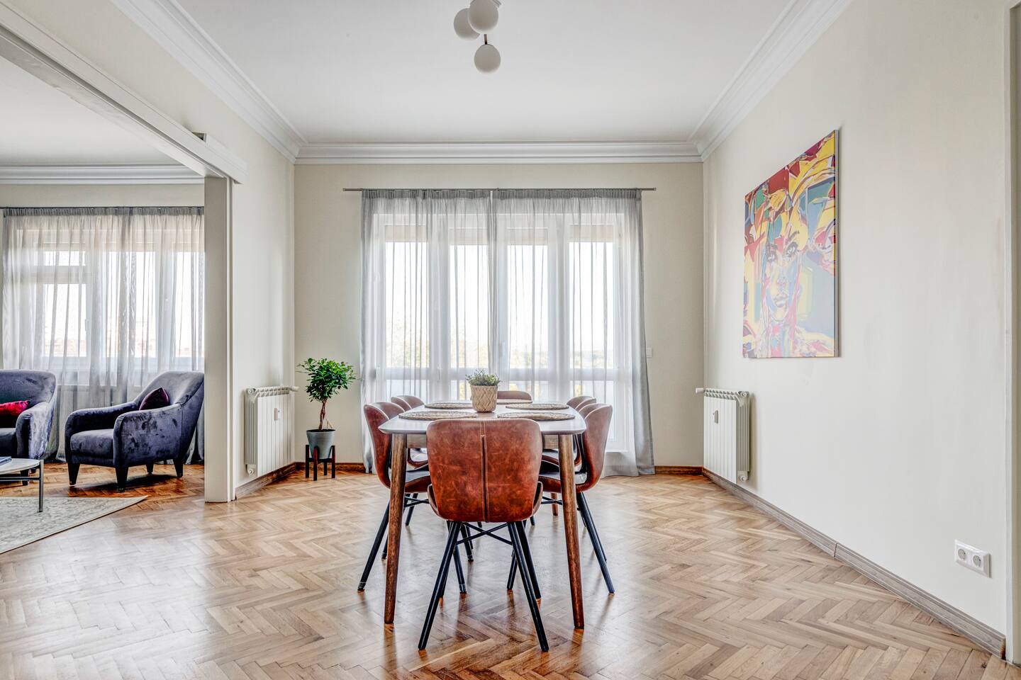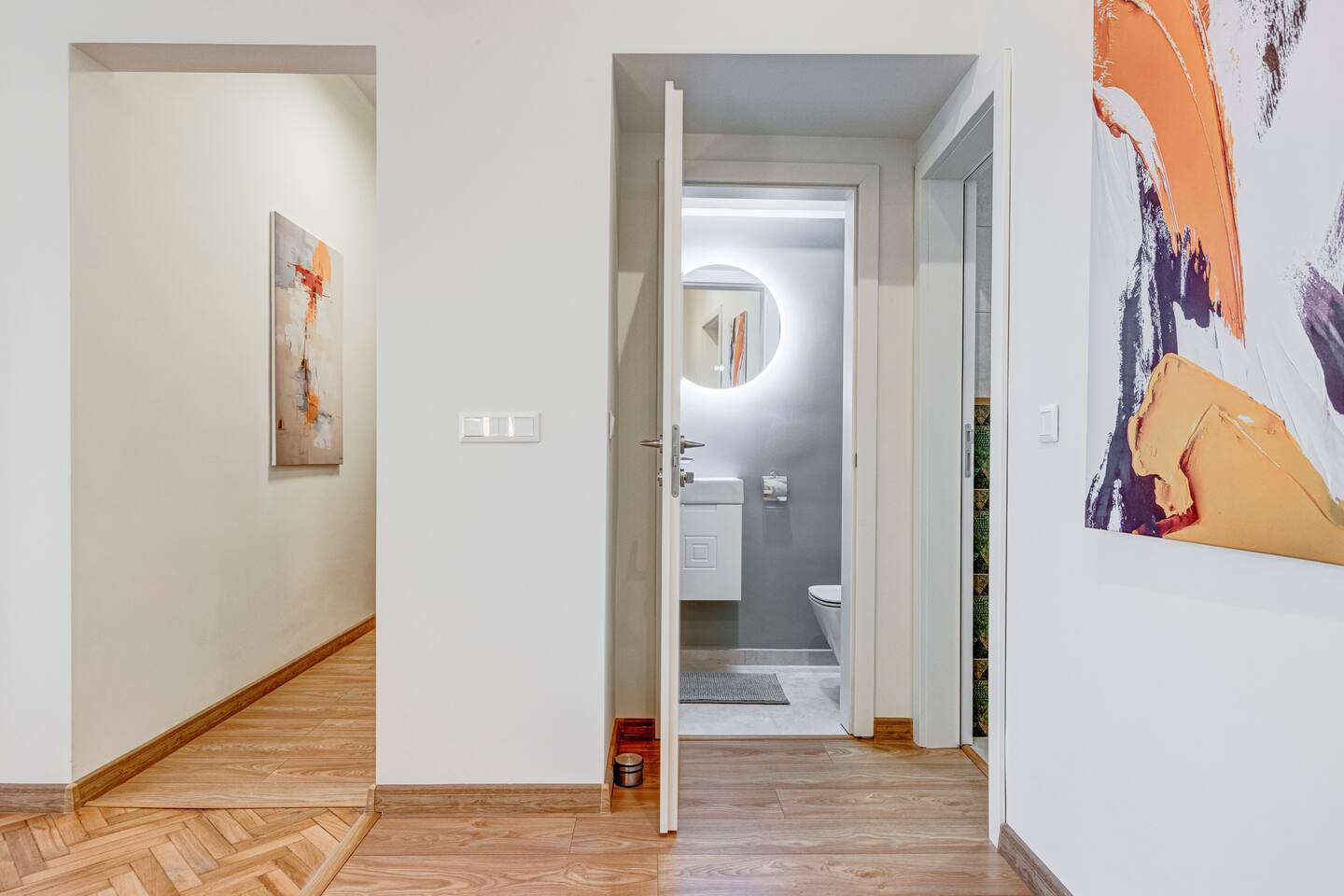 Our fully renovated apartment offers two cozy bedrooms, a modern bathroom, and a separate restroom. It’s thoughtfully designed and equipped with everything you need for a comfortable stay — whether you’re here for a weekend getaway or a longer visit. Relax in the bright living room with a smart TV and large windows overlooking Sofia University and one of the city’s most charming historic parks. The apartment also has an elevator for easy access.