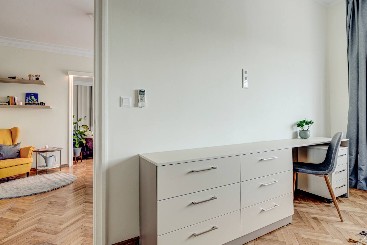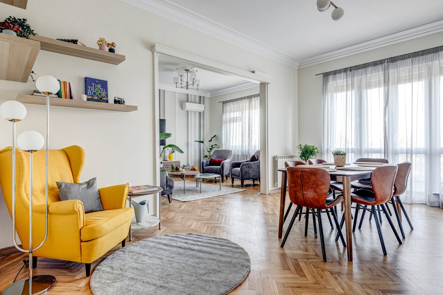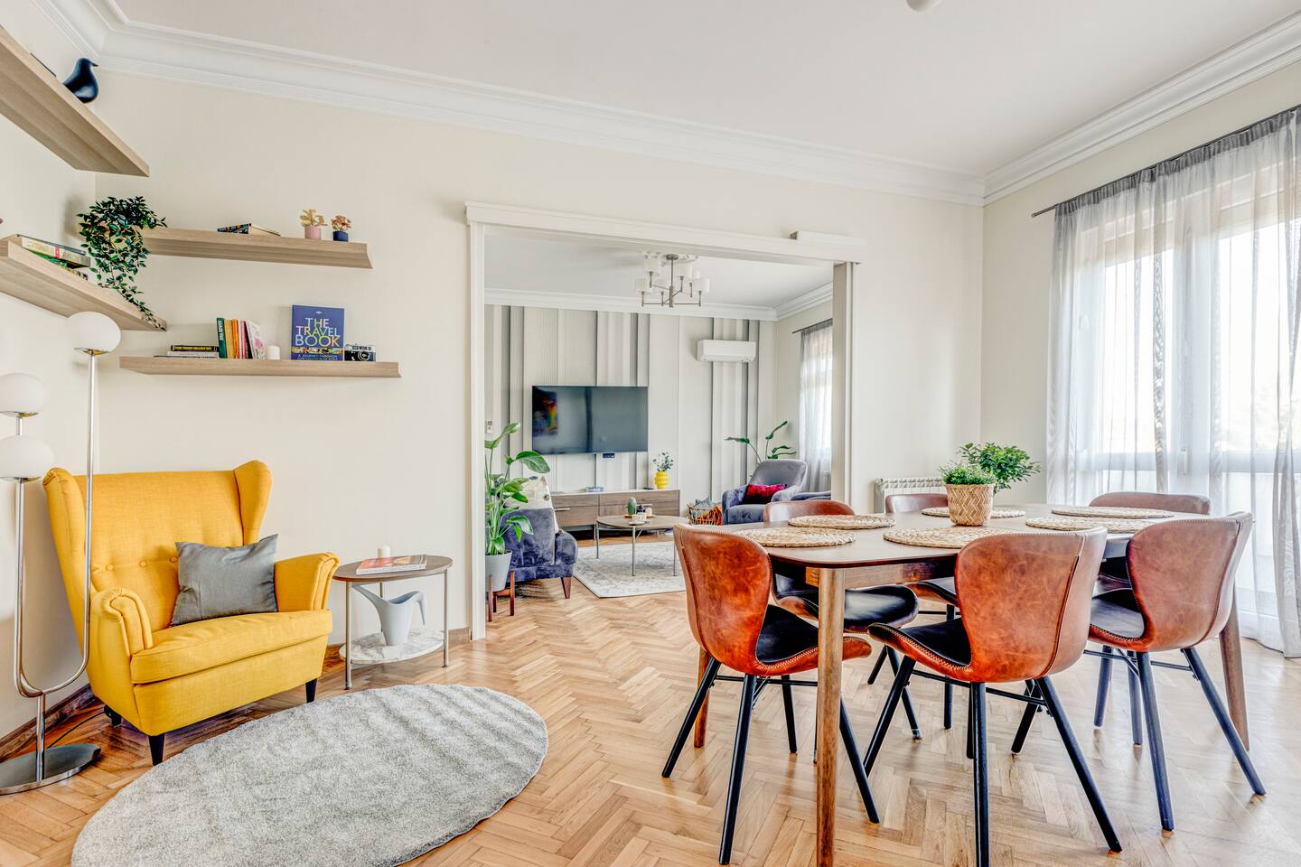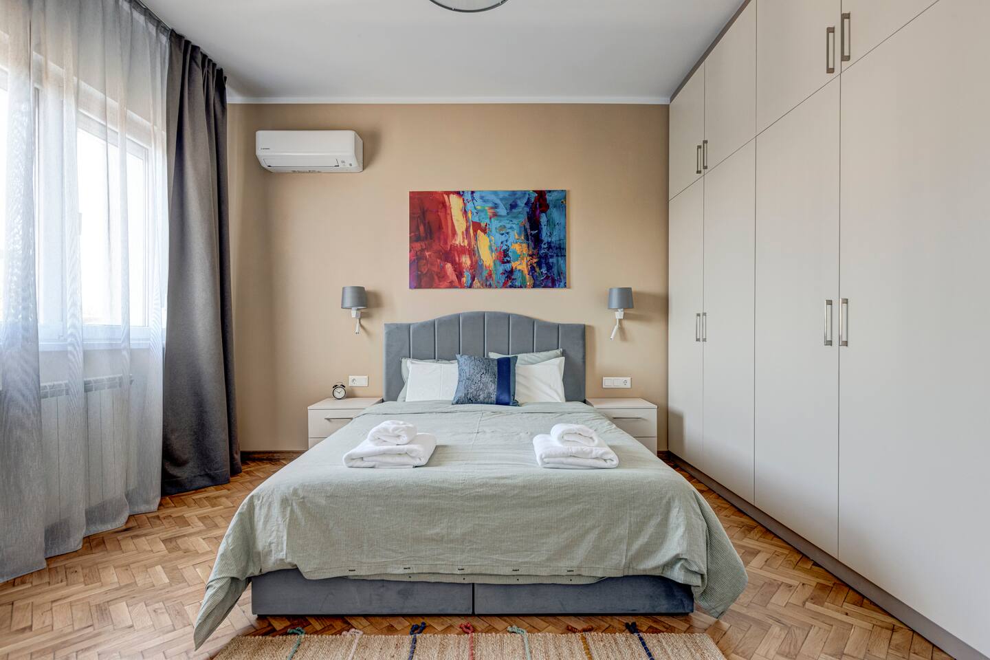 Our fully renovated apartment offers two cozy bedrooms, a modern bathroom, and a separate restroom. It’s thoughtfully designed and equipped with everything you need for a comfortable stay — whether you’re here for a weekend getaway or a longer visit. Relax in the bright living room with a smart TV and large windows overlooking Sofia University and one of the city’s most charming historic parks. The apartment also has an elevator for easy access.