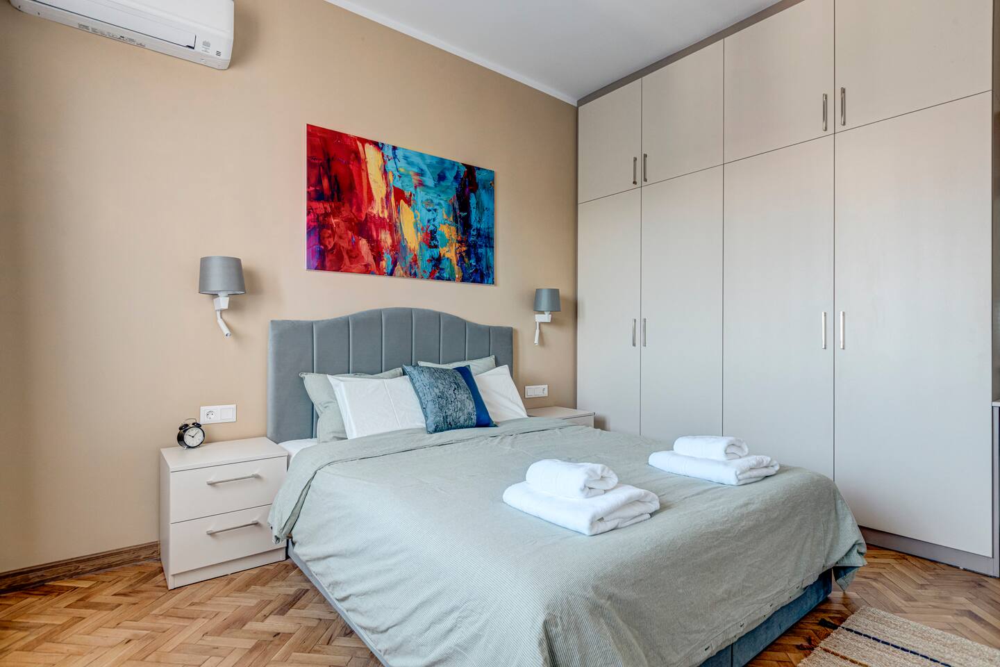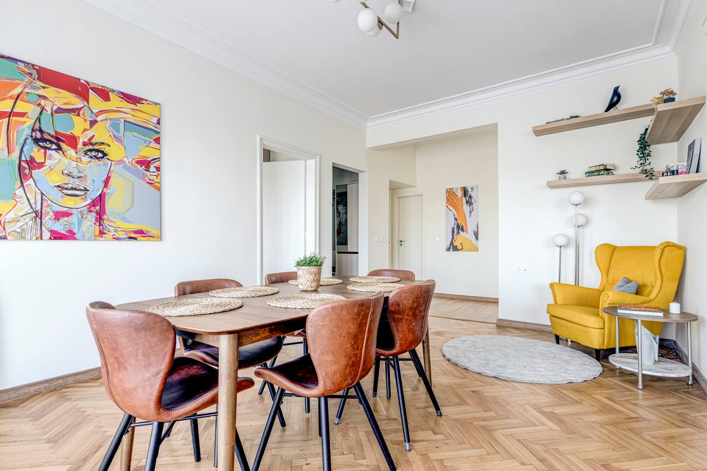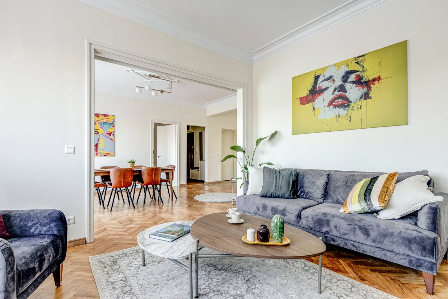 Welcome to your home away from home in the heart of Sofia! Step into this bright, stylish two- bedroom apartment perfectly located in one of Sofia’s most iconic central areas - just a 2 min. walk from Sofia University and moments away from the city’s famous yellow cobblestone streets. For your smooth access we have an elevator that will leads you to the very top! From the 6th floor, you’ll enjoy sweeping views of the beautiful city park right outside your window.