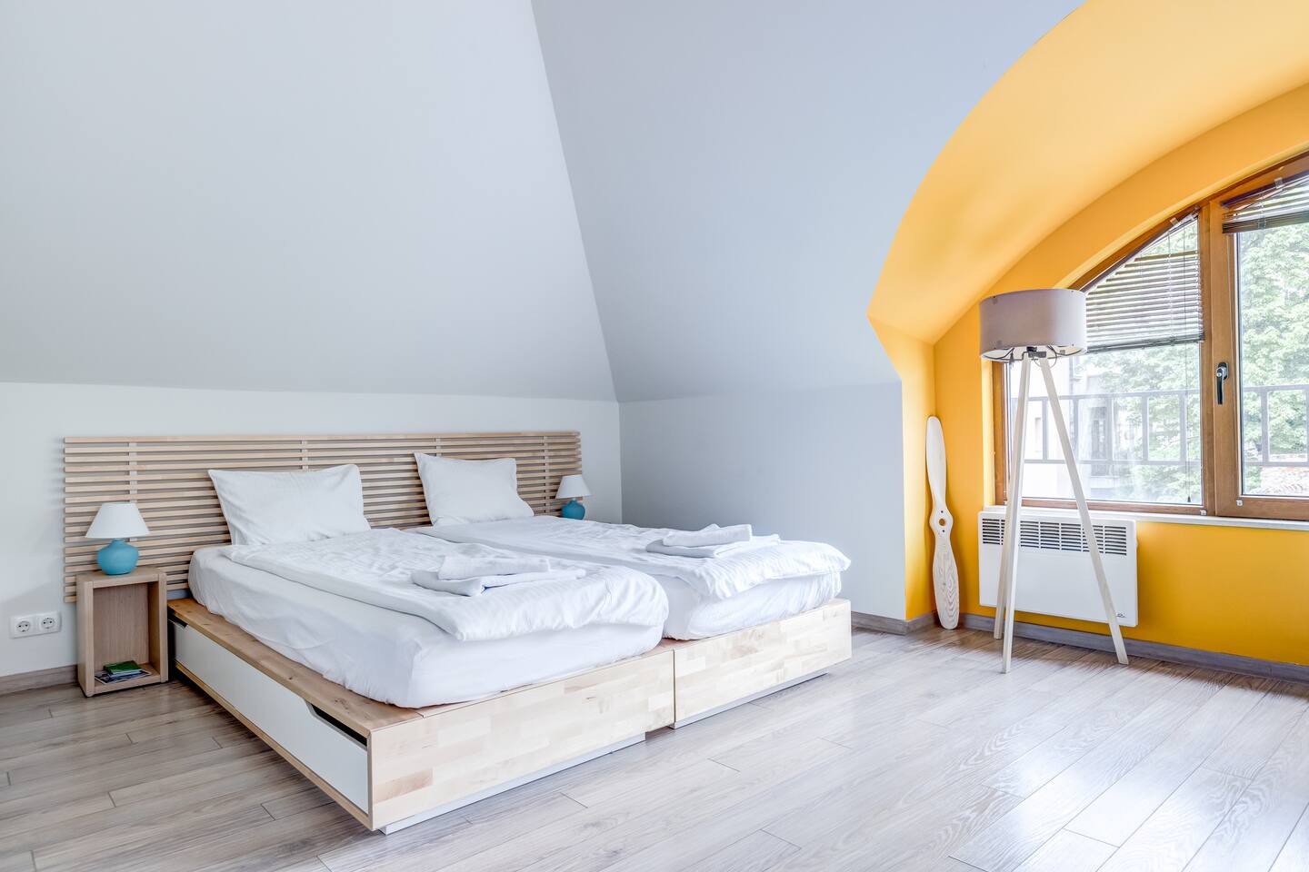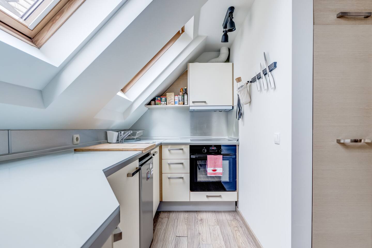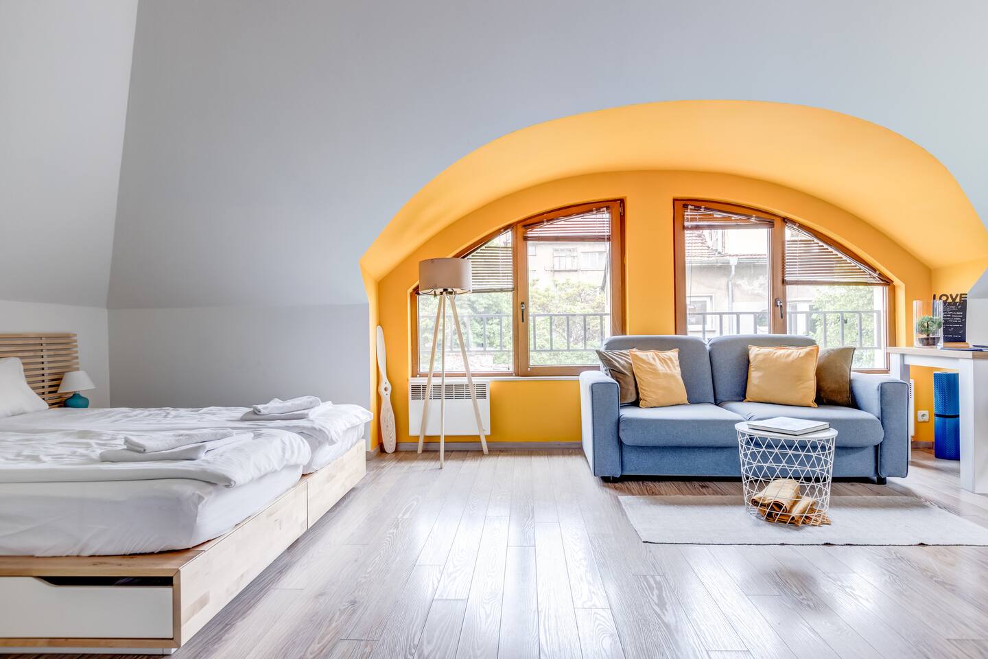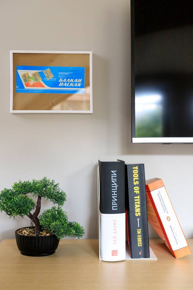 Guests will have full access to the entire loft, including the following amenities: - 51 sq.m modern loft near Eagle's Bridge and Borisova gradina Park - Two adaptable beds (90x200cm) - Rotating Android TV with Netflix, HBO Max, Disney+ - High-speed Wi-Fi (91 Mbps) and Ethernet connection - Air conditioning and portable heater - Fully equipped kitchen: Nespresso machine, cooking basics, pots, - pans, oil, salt, pepper - Dining table with dishes, silverware, wine glasses - Washer and drying rack for laundry - Hair dryer, iron, and hangers - Dedicated workspace with a comfortable chair - Crib available upon request - Exercise equipment (yoga mat) - Board games, books, and reading material - Smoke alarm, fire extinguisher, and first aid kit - Elevator access - Room-darkening shades and window guards - Cleaning products, essentials (towels, bed sheets, soap, and toilet paper) - Shampoo, shower gel, and hot water kettle - Long-term stays allowed (28 days or more)