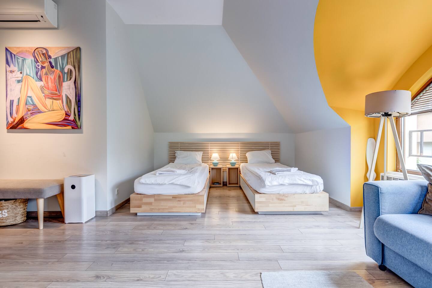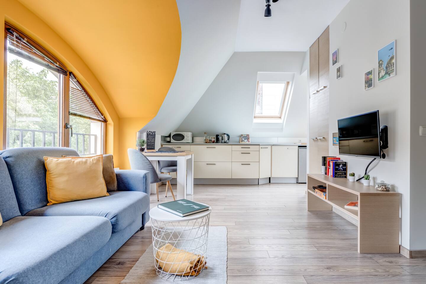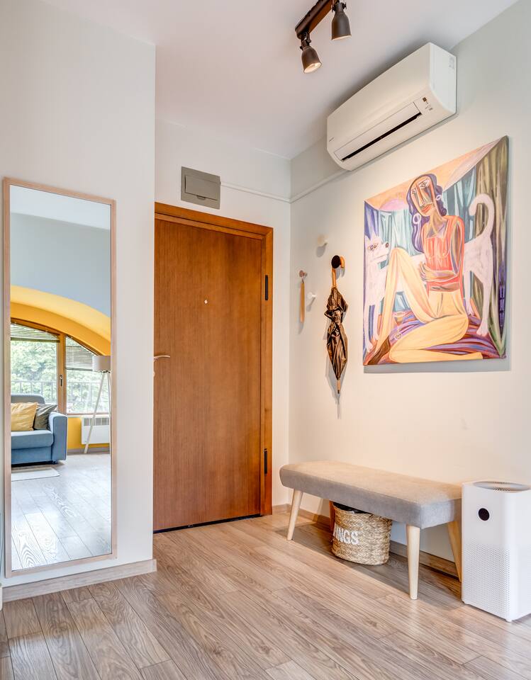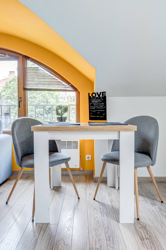 Experience modern comfort in this bright, 51 sq.m loft near "Borisova gradina" Park and Eagle's Bridge. Enjoy vibrant decor, wood accents, and two versatile beds (90x200cm). Perfectly located, you're steps from Sofia’s main attractions, with easy access to public transport. - Rotating Android TV with Netflix - Air purifier with HEPA filter - Fully equipped kitchen - High-speed Wi-Fi (91 Mbps) - New, well-maintained building Book now to experience the best of Sofia!
