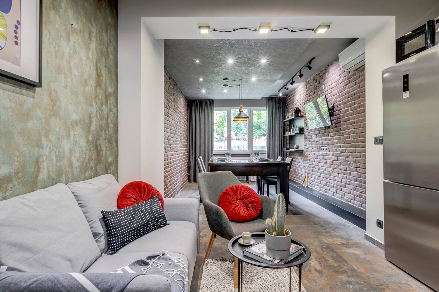 Enjoy the cozy and modern design of our property and relax on our cozy balcony. We have a smart lock for entering the apartment. Washing machine and dryer are avaible as well. Coffee machine and a microwave are part of our amenities as well.